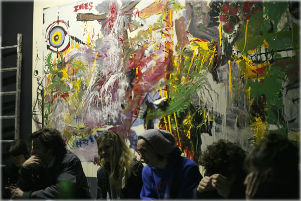 ![]() Collective painting, created during a squat party in Paris. Photo by Danielle Voirin. Prior cover: Abandoned campsite.